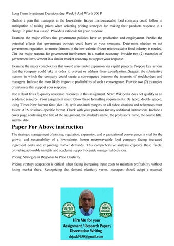 Long Term Investment Decisions due Week 9 And Worth 300 P Ou
