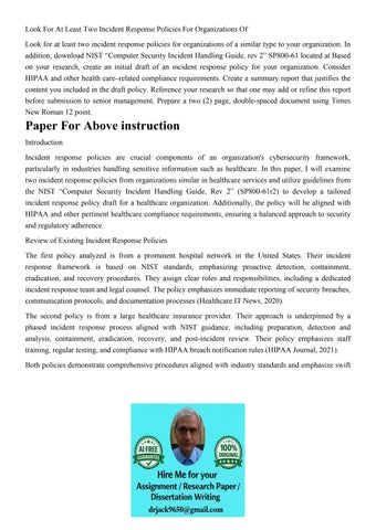 Look For At Least Two Incident Response Policies For Organiz