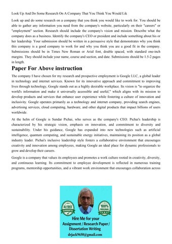 Look Up And Do Some Research On A Company That You Think You