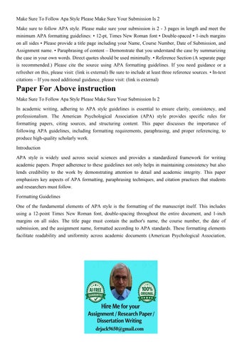 Make Sure To Follow Apa Style Please Make Sure Your Submissi