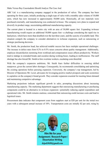 Make Versus Buy Casestudents Should Analyze The Case And ABC