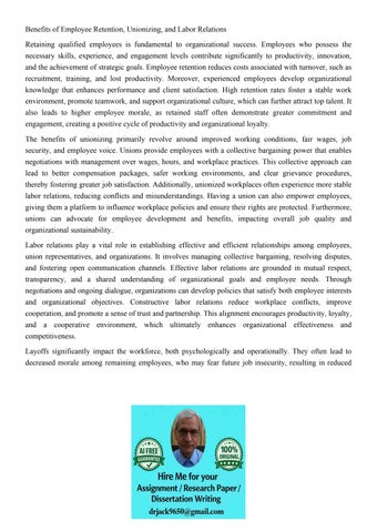 Benefits of Employee Retention, Unionizing, and Labor Relati