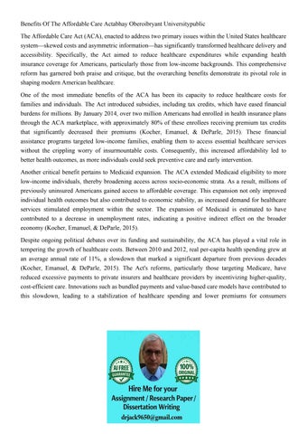 Benefits Of The Affordable Care Actabhay Oberoibryant Univer