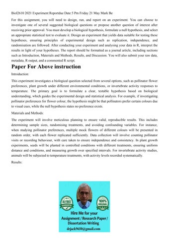 Biol2610 2021 Experiment Reportdue Date 5 Pm Friday 21 May M