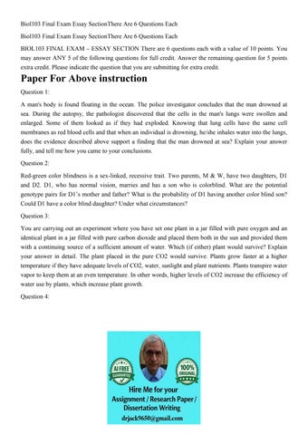 Biol103 Final Exam Essay SectionThere Are 6 Questions Each B