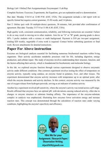 Biology Lab 1 Online2 Part Assignmenttopic Enzymespart 1 Lab