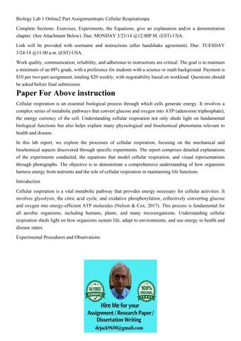 Biology Lab 1 Online2 Part Assignmenttopic Cellular Respirat