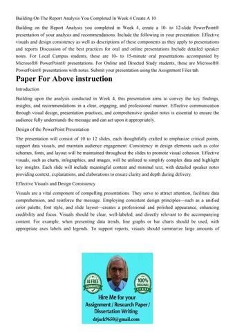 Building On The Report Analysis You Completed In Week 4 Crea