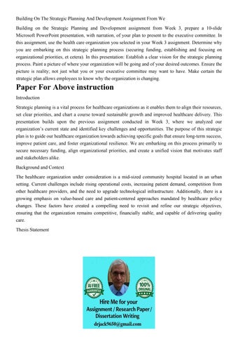 Building On The Strategic Planning And Development Assignmen