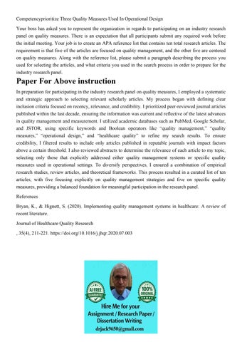 Competencyprioritize Three Quality Measures Used In Operatio