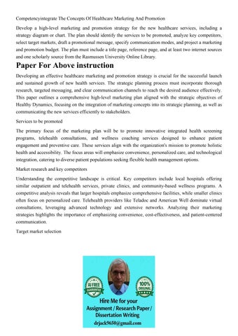 Competencyintegrate The Concepts Of Healthcare Marketing And