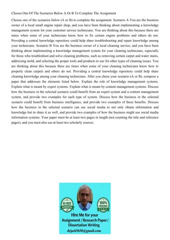 Choose One Of The Scenarios Below A Or B To Complete The Ass