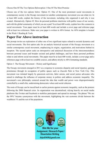 Choose One Of The Two Options Belowoption 1 One Of The Most