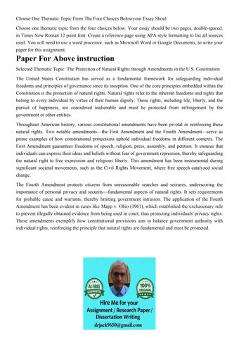 Choose One Thematic Topic From The Four Choices Belowyour Es