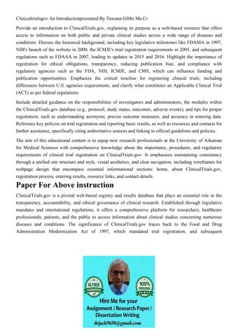 Clinicaltrialsgov An Introductionpresented By Tawana Gibbs M