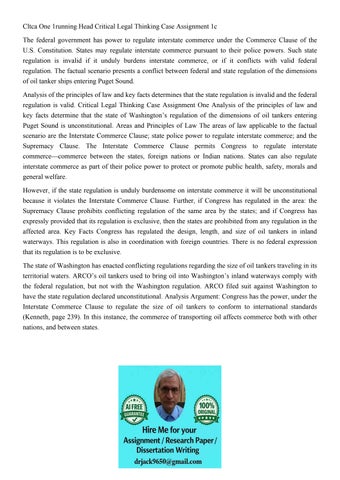 Cltca One 1running Head Critical Legal Thinking Case Assignm