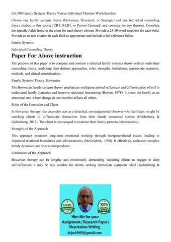 Cnl 500 Family Systems Theory Versus Individual Theories Wor
