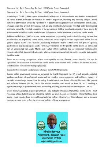 Comment No1 To N Zaccording To Gasb 1999 Capital Assets Acco