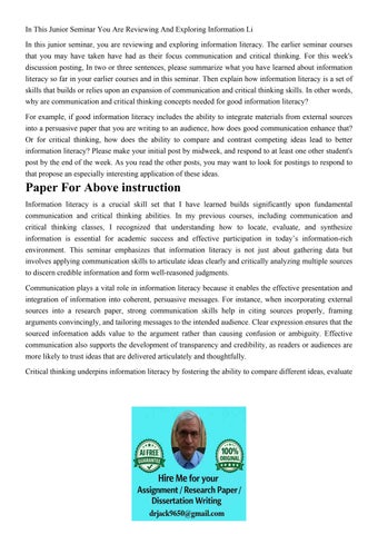 In This Junior Seminar You Are Reviewing And Exploring Infor