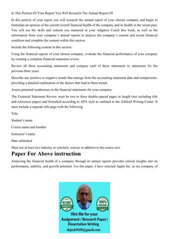 In This Portion Of Your Report You Will Research The Annual