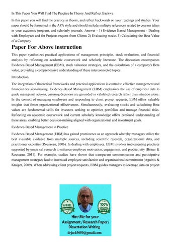 In This Paper You Will Find The Practice In Theory And Refle