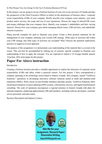 In This Project You Are Going To Set Up A Fictitious Busines