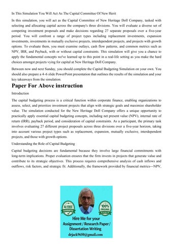 In This Simulation You Will Act As The Capital Committee Of