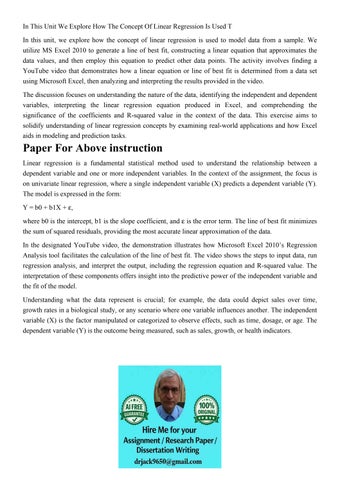 In This Unit We Explore How The Concept Of Linear Regression