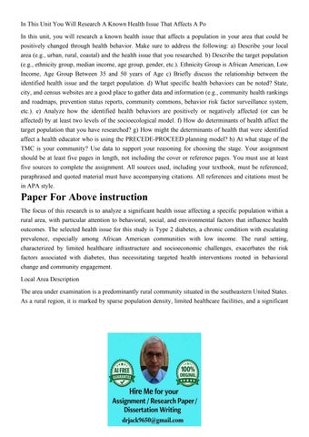 In This Unit You Will Research A Known Health Issue That Aff