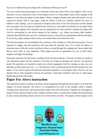 You Are To Submit Discussion Papers On A Minimum Offourany F