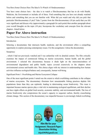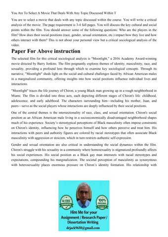 You Are To Select A Movie That Deals With Any Topic Discusse