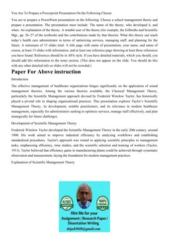 You Are To Prepare a Powerpoint Presentation On the Followin