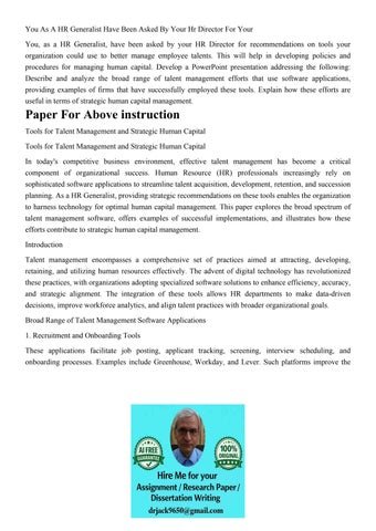You As A HR Generalist Have Been Asked By Your Hr Director F