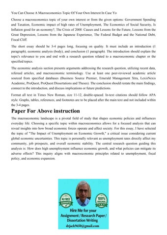 You Can Choose A Macroeconomics Topic Of Your Own Interest I