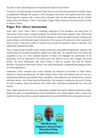 You Have To Do A Brief Response For Nana By Emile Zola You C