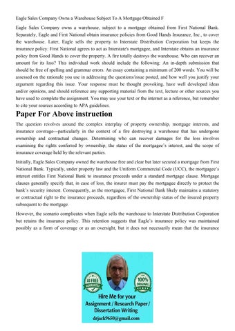 Eagle Sales Company Owns a Warehouse Subject To A Mortgage O