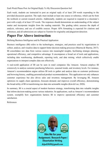 Each Week You Will Be Asked To Respond To A Relevant Discuss