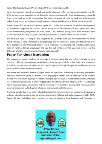 Earlier This Semester I Asked You To Track Of Your Media Int
