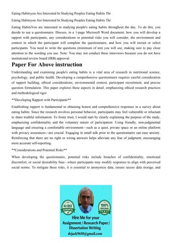 Eating Habitsyou Are Interested In Studying Peoples Eating H
