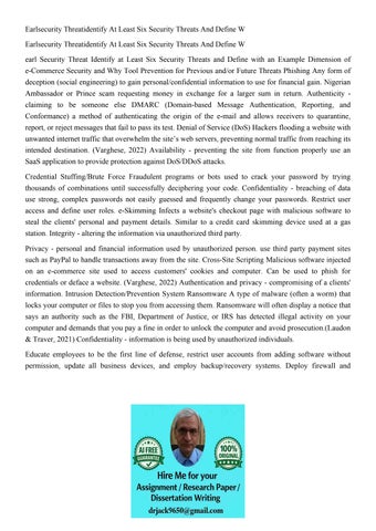 Earlsecurity Threatidentify At Least Six Security Threats An
