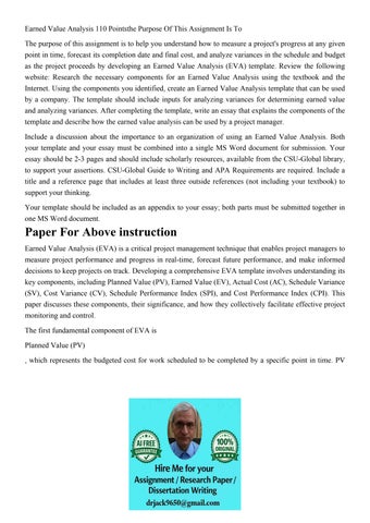 Earned Value Analysis 110 Pointsthe Purpose Of This Assignme