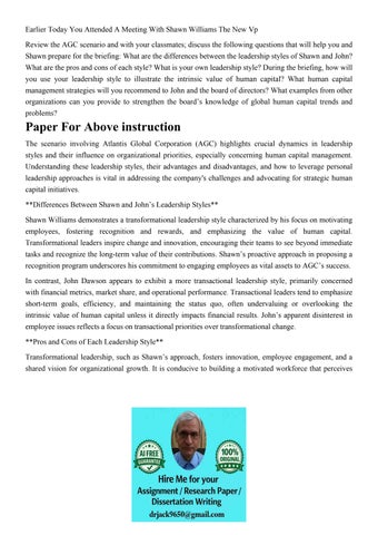 Earlier Today You Attended A Meeting With Shawn Williams The
