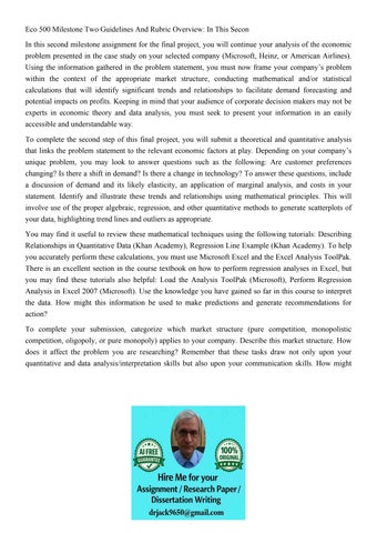 Eco 500 Milestone Two Guidelines And Rubric Overview: In Thi