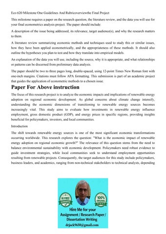 Eco 620 Milestone One Guidelines And Rubricoverviewthe Final