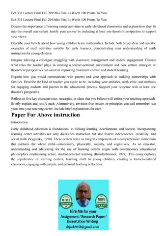 Ech 331 Lecture Final Fall 2015this Final Is Worth 100 Point