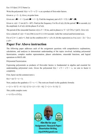 Ece 115 Quiz 2 F12 Name La Write the polynomial: f(x) = x^3