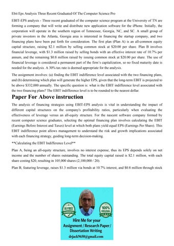 Ebit Eps Analysis Three Recent Graduated Of The Computer Sci