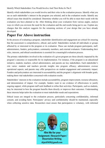 Identify Which Stakeholders You Would Involve And Their Role