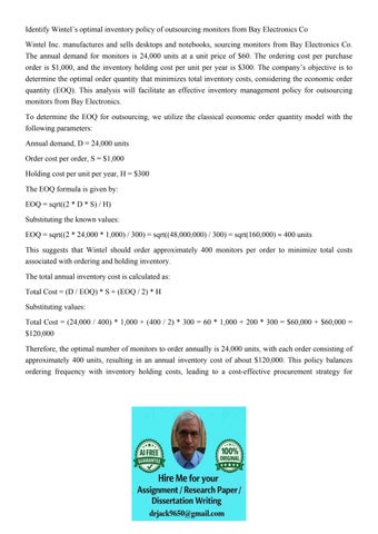 Identify Wintel’s optimal inventory policy of outsourcing mo