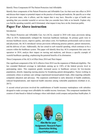 Identify Three Components Of The Patient Protection And Affo